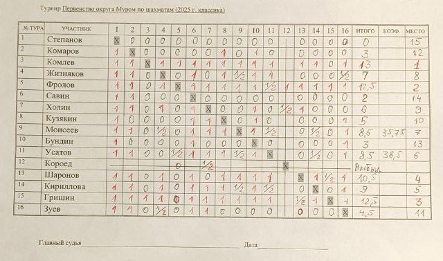 2025 » Декабрь » 21 » Итоги 77-го чемпионата г. Мурома по классическим шахматам